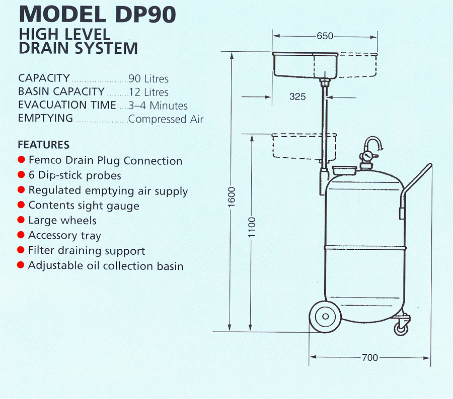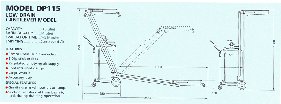 The mobile units work by applying shop compressed air to a built-in venturi pump on the system which in turn evacuates the sump or tank. When the oil suction valve is opened, the oil is sucked into the oil storage reservoir tank on the portable unit. The airline can then also be disconnected or removed to drain the vehicles in remote places. The suction capacity on one charge is equivalent to 2/3rds of the available reservoir storage space so the system allows for a greater amount of versatility.